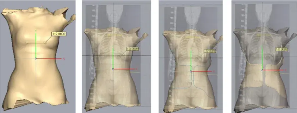 通过模拟患者佩戴支具时支具表面的应力分布构建支具网格,在保证强度的前提下尽可能增大镂空面积,保证佩戴者热舒适性。类似BOA®系统的国产扣具已经被广泛应用在鞋、支具和假肢上,用户可以随时调节松紧度。
