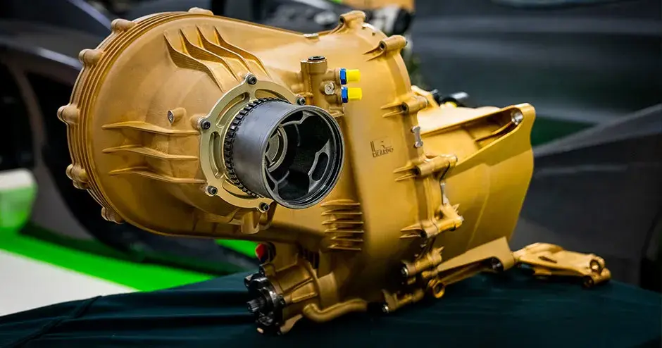 优化变速箱的第一步是与著名变速箱制造商 Ricardo 合作创作出定制化设计。在首次采用增材制造后,Rodin Cars 与 3D Systems 开展了大量合作并与 Ricardo 分享了其获得的知识,向他们介绍了增材制造相关设计和制造的独特优势和能力。Rodin Cars 需要非常特别的齿轮比和外壳尺寸,并且深知只有增材制造能够生产出这样的设计。去除过多重量也是重中之重,以便在某些区域将壁厚降低到 2 毫米。两家公司合作围绕 Rodin Cars 所追寻的优化几何形状设计出了部件,整合了内部结构和流体通道来帮助减小最终变速箱的体积,使其最终大小为 400 毫米 x 650 毫米 x 300 毫米。